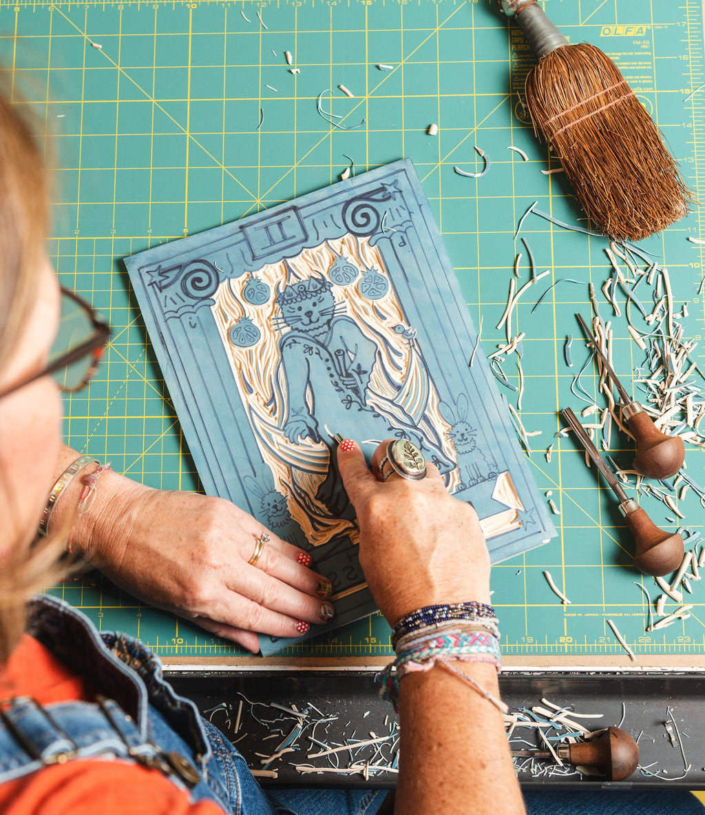 My name is Sarah May and I am the woman behind Block21Prints. I am a linocut artist and illustrator who loves colors, sweet animals, kind sentiments and playful graphics!