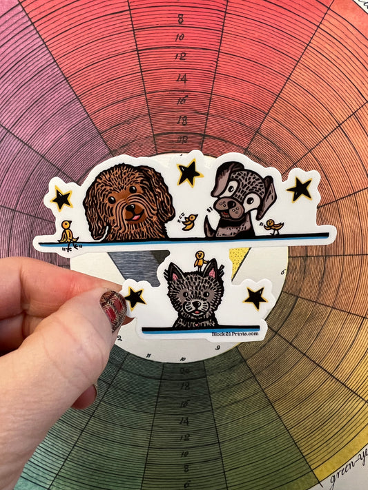 Three Happy Dogs Die Cut Vinyl Decal Sticker for Waterbottle Laptop Car