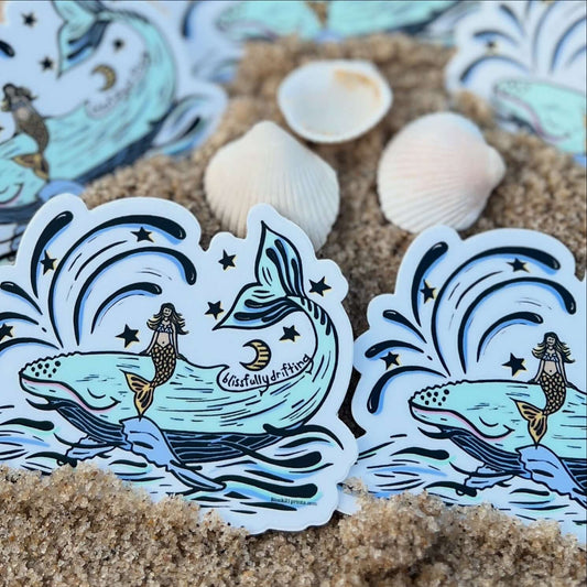 Blissfully Drifting Whale and Mermaid Sticker Decal
