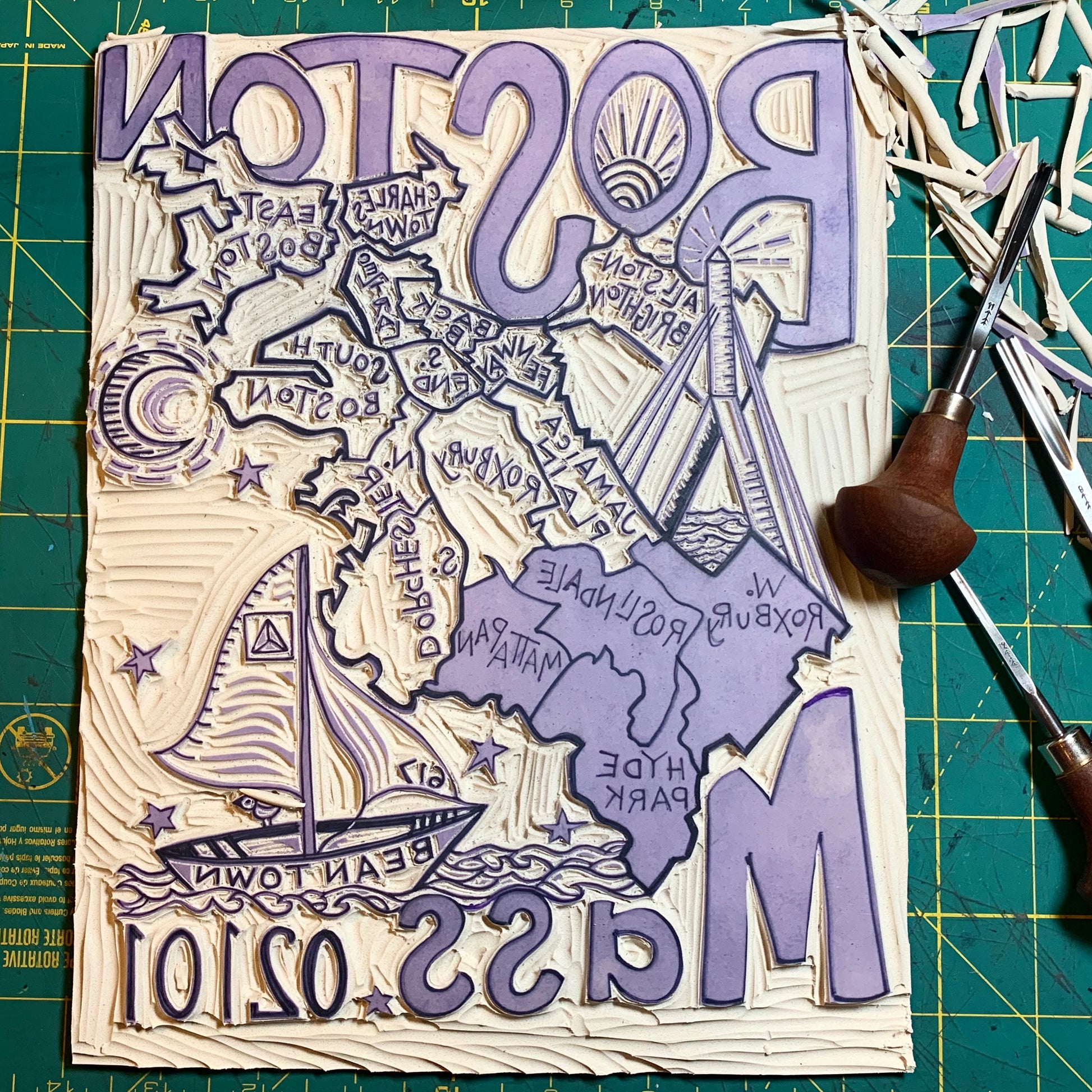This is an 11 x 17” poster of my original linoleum carving that I then colored digitally. It is printed on 100 lb. glossy paper.
