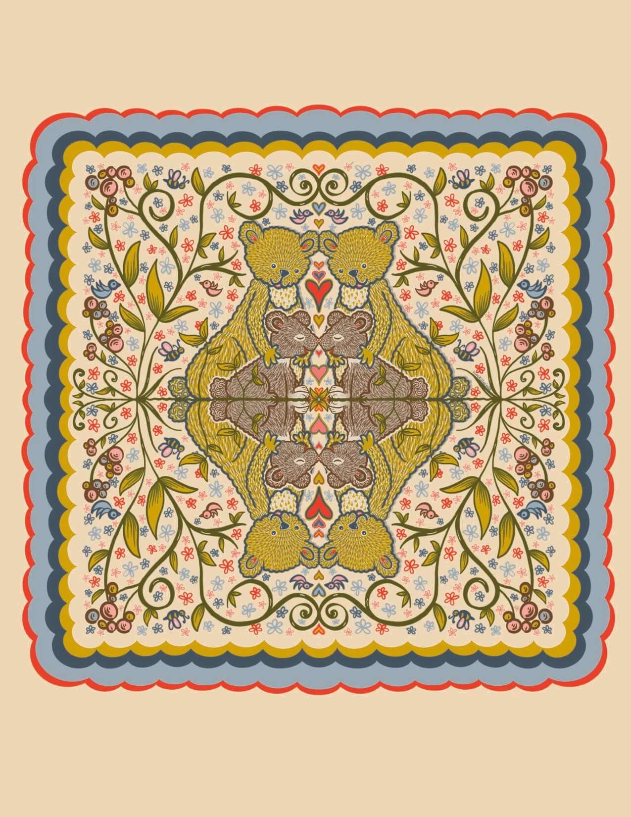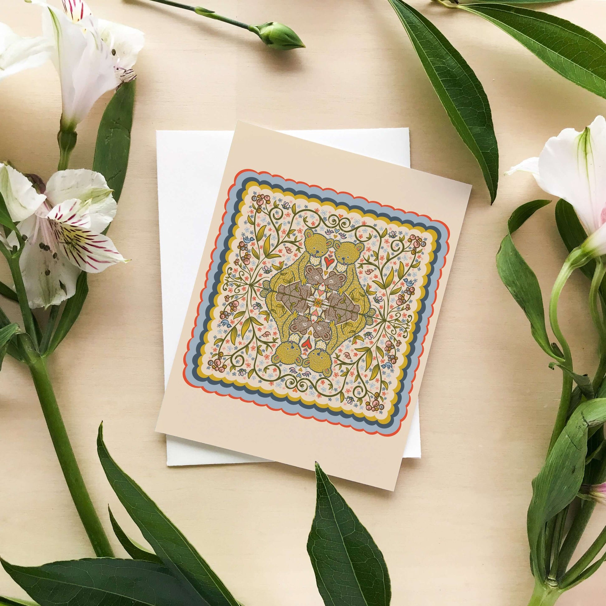 Bring a touch of Scandinavian charm to your correspondence with this symmetrical bear design inspired by folk art and nature.