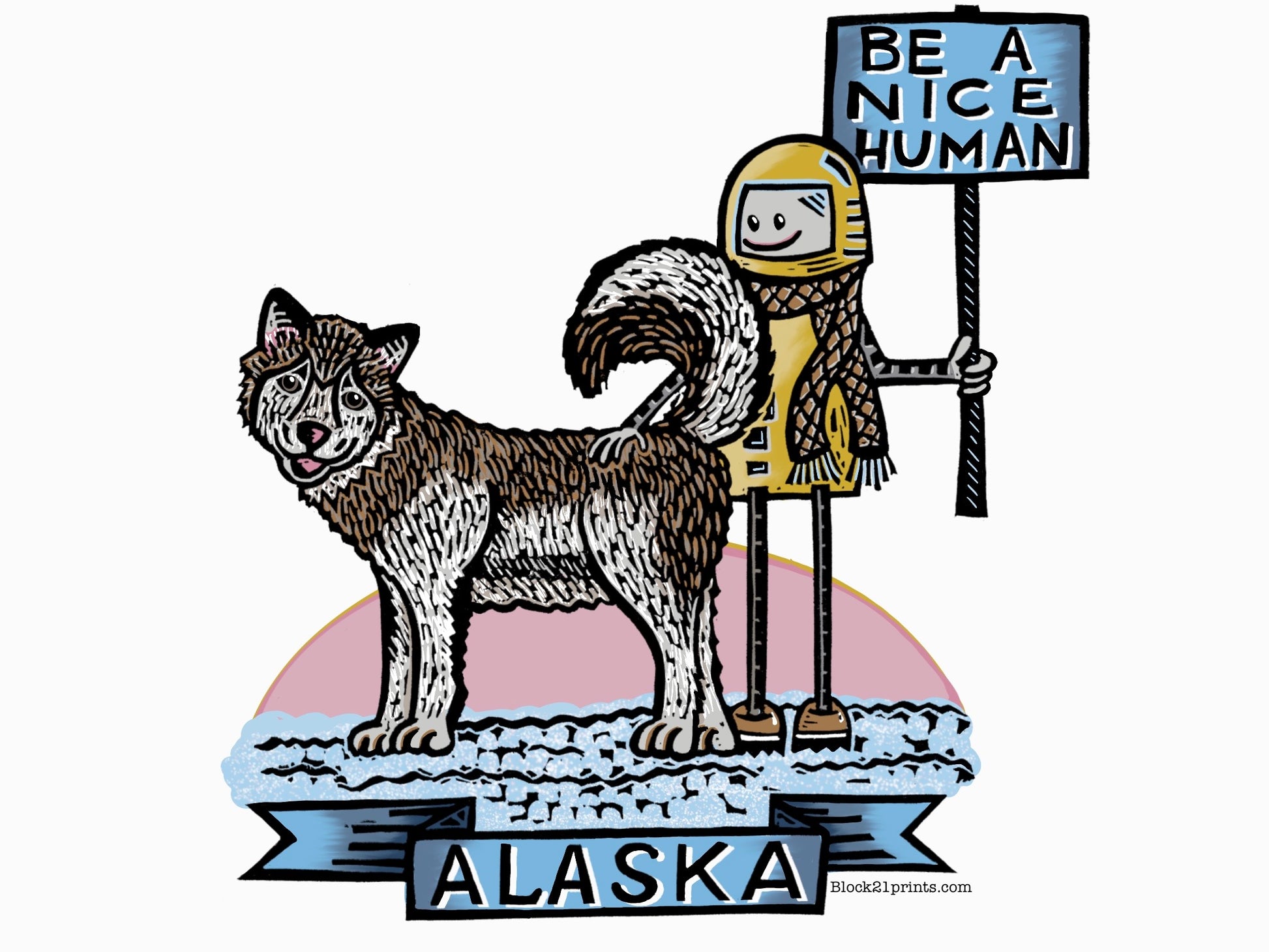 This is an 4.25 x 6” postcard of my original linoleum carving that I then colored digitally.
