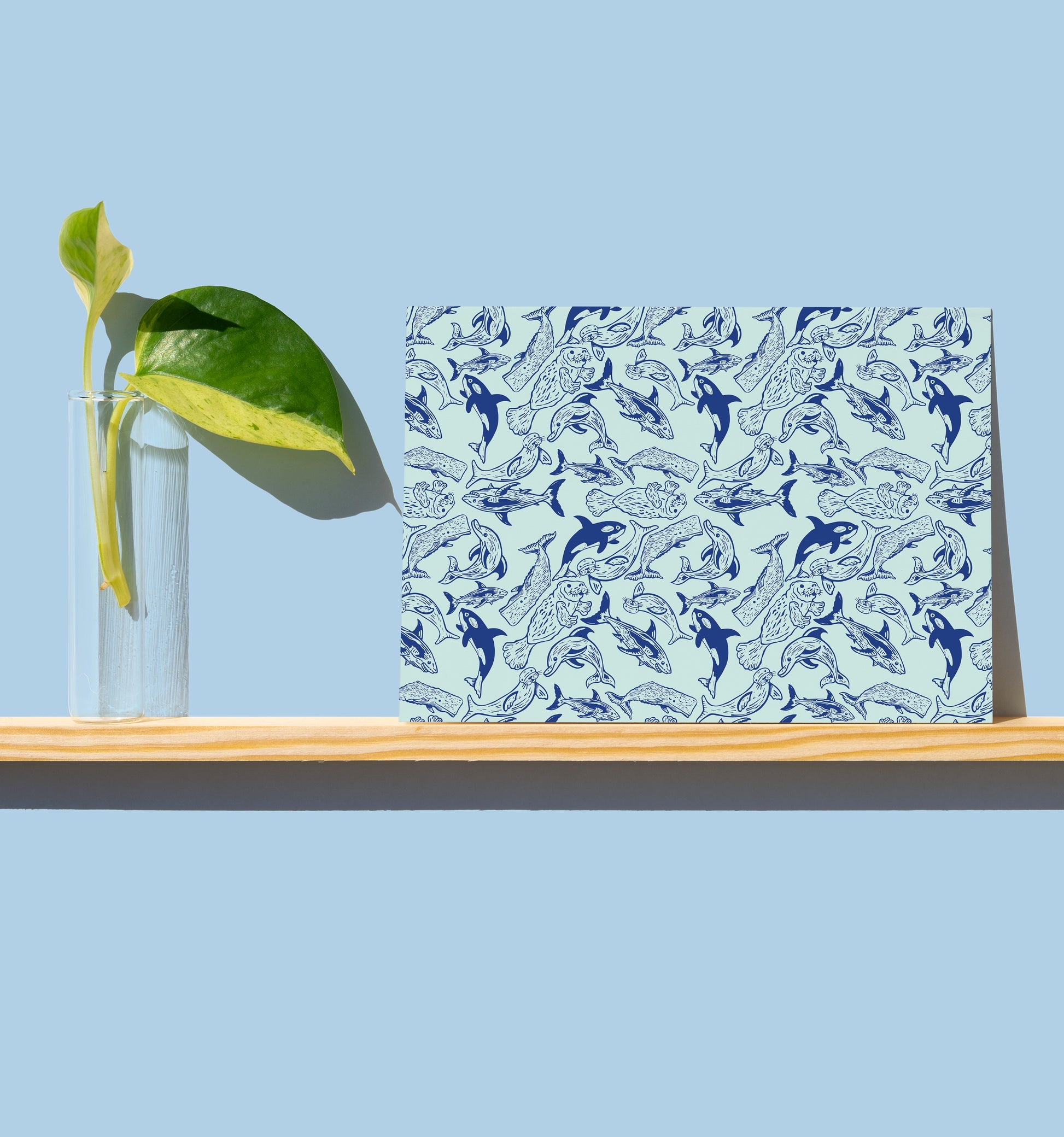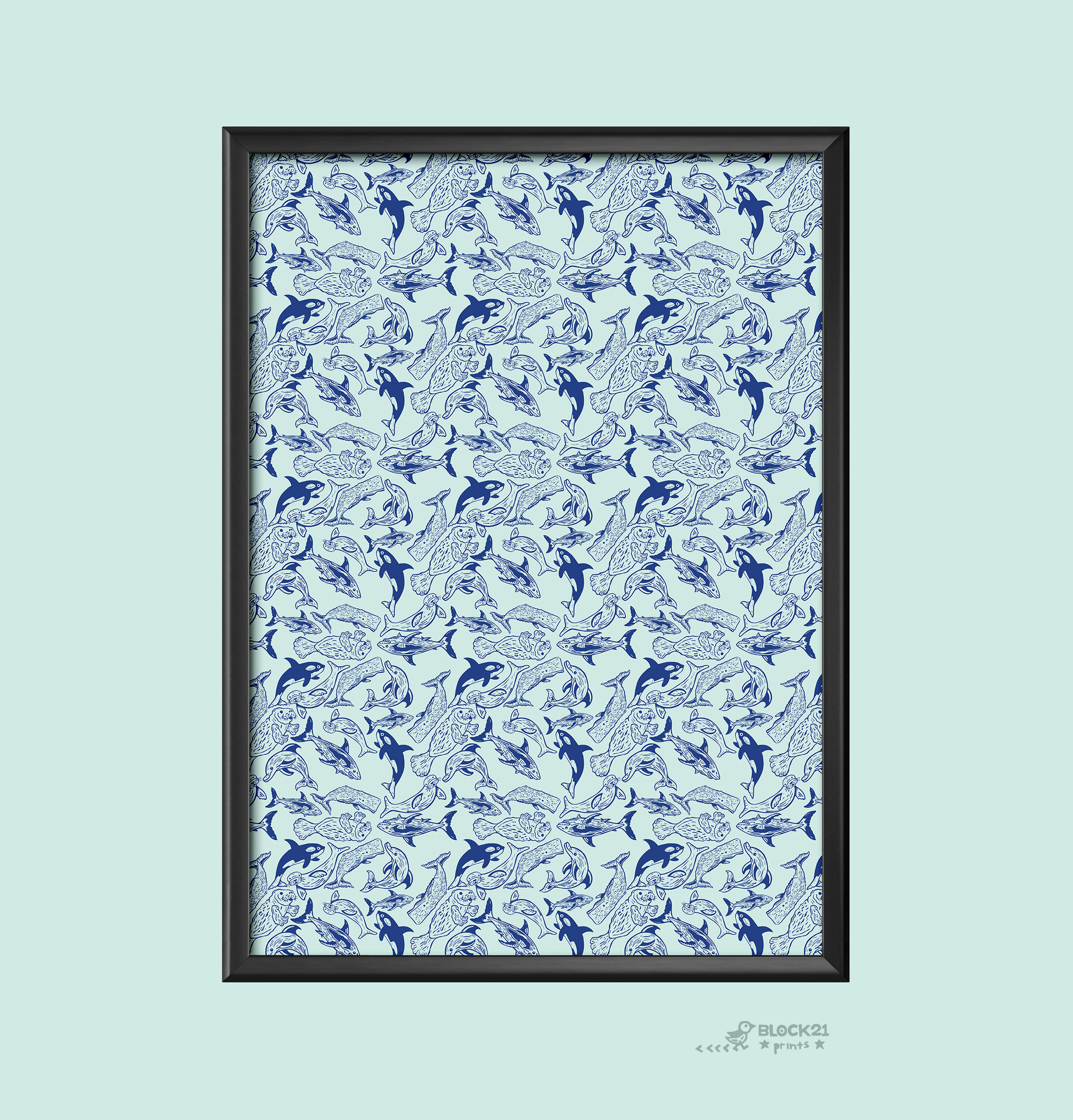 The artwork is my own linoleum print that I drew, then carved out of linoleum and then painted digitally.