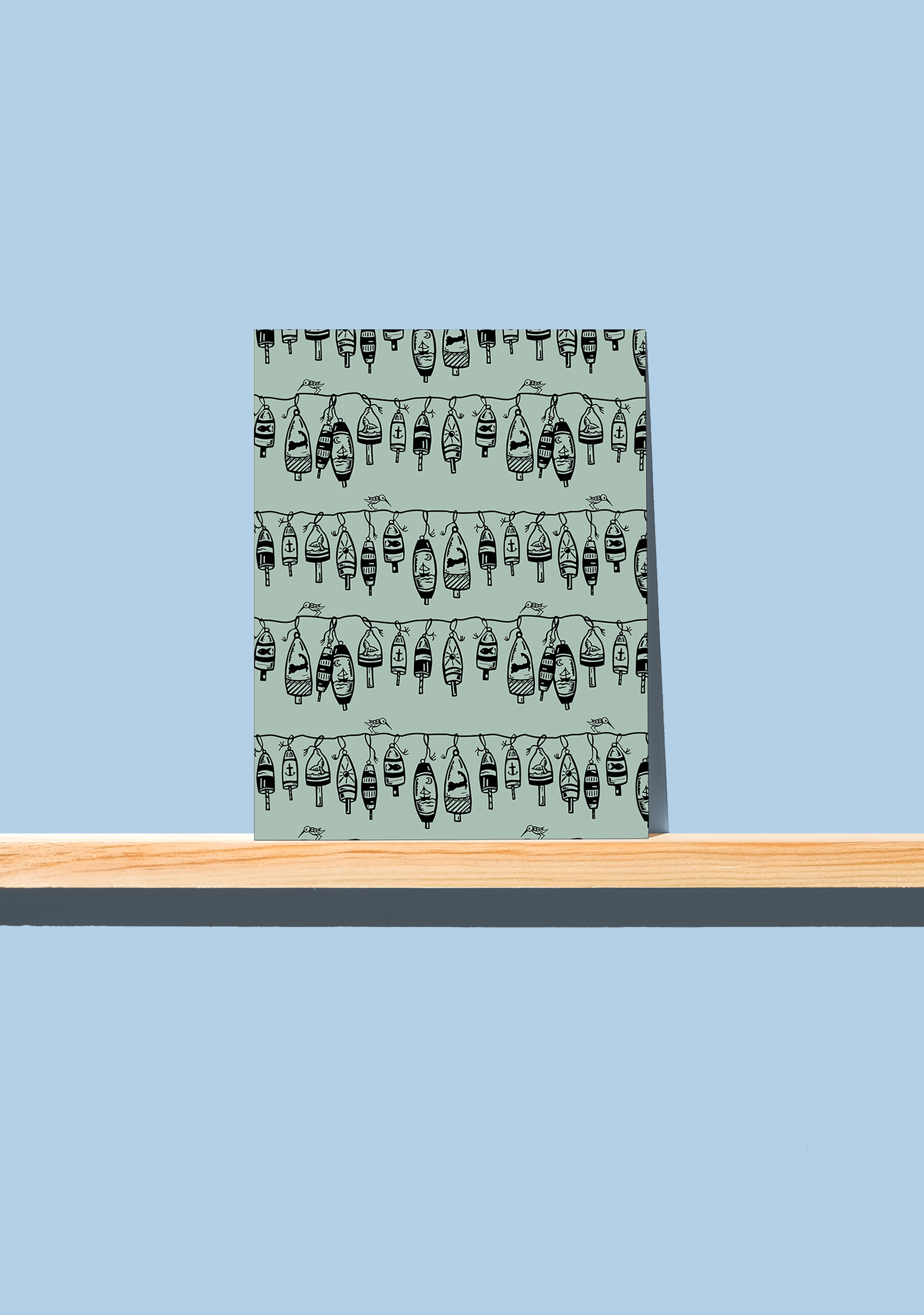 The artwork is my own linoleum print that I drew, then carved out of linoleum and then painted digitally.