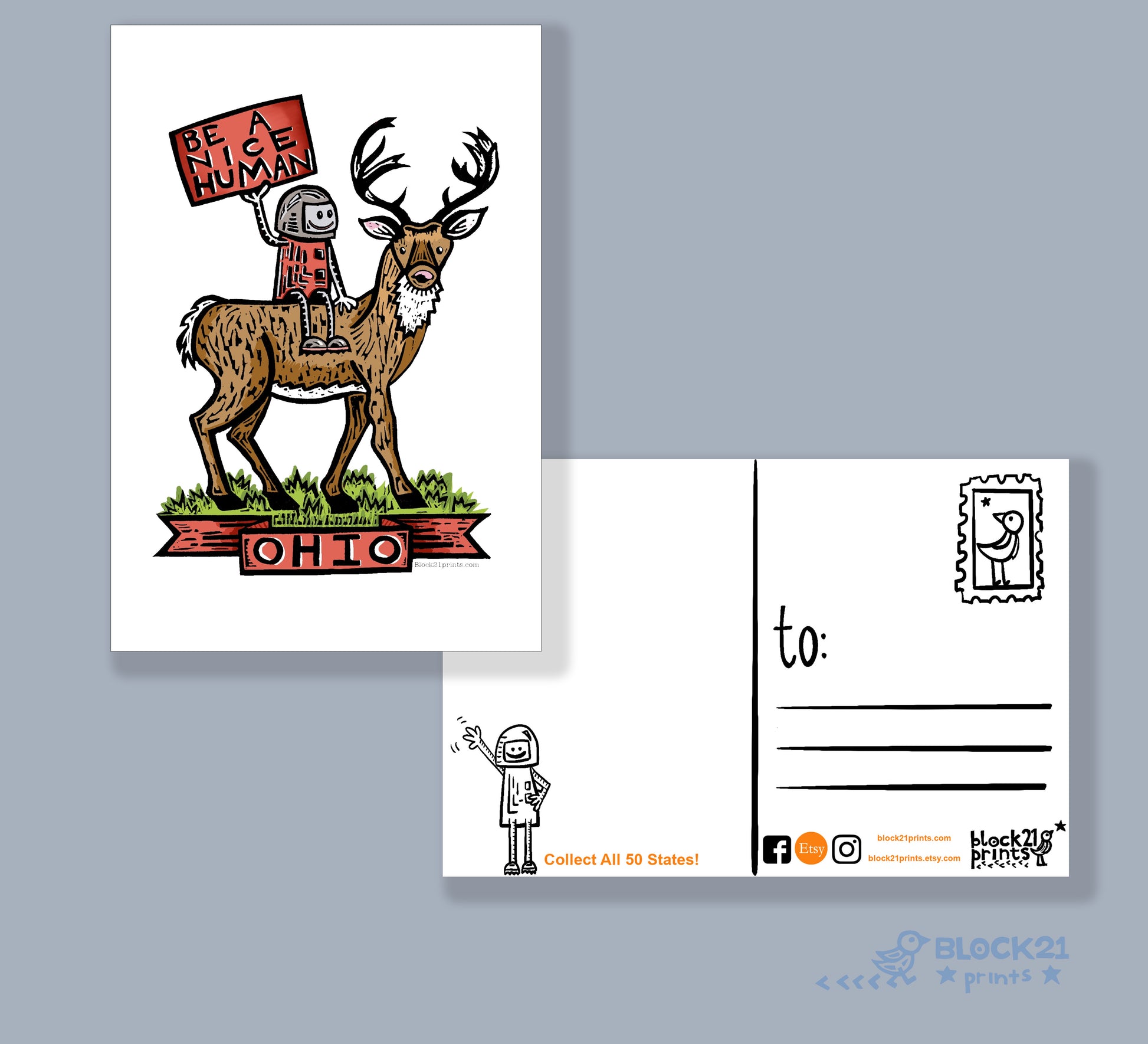 Meet the Block21Prints Spaceman, who is a Nice Human ambassador, and he’s traveling the United States. Along the way he’s meeting each state’s official animal, bird or reptile.