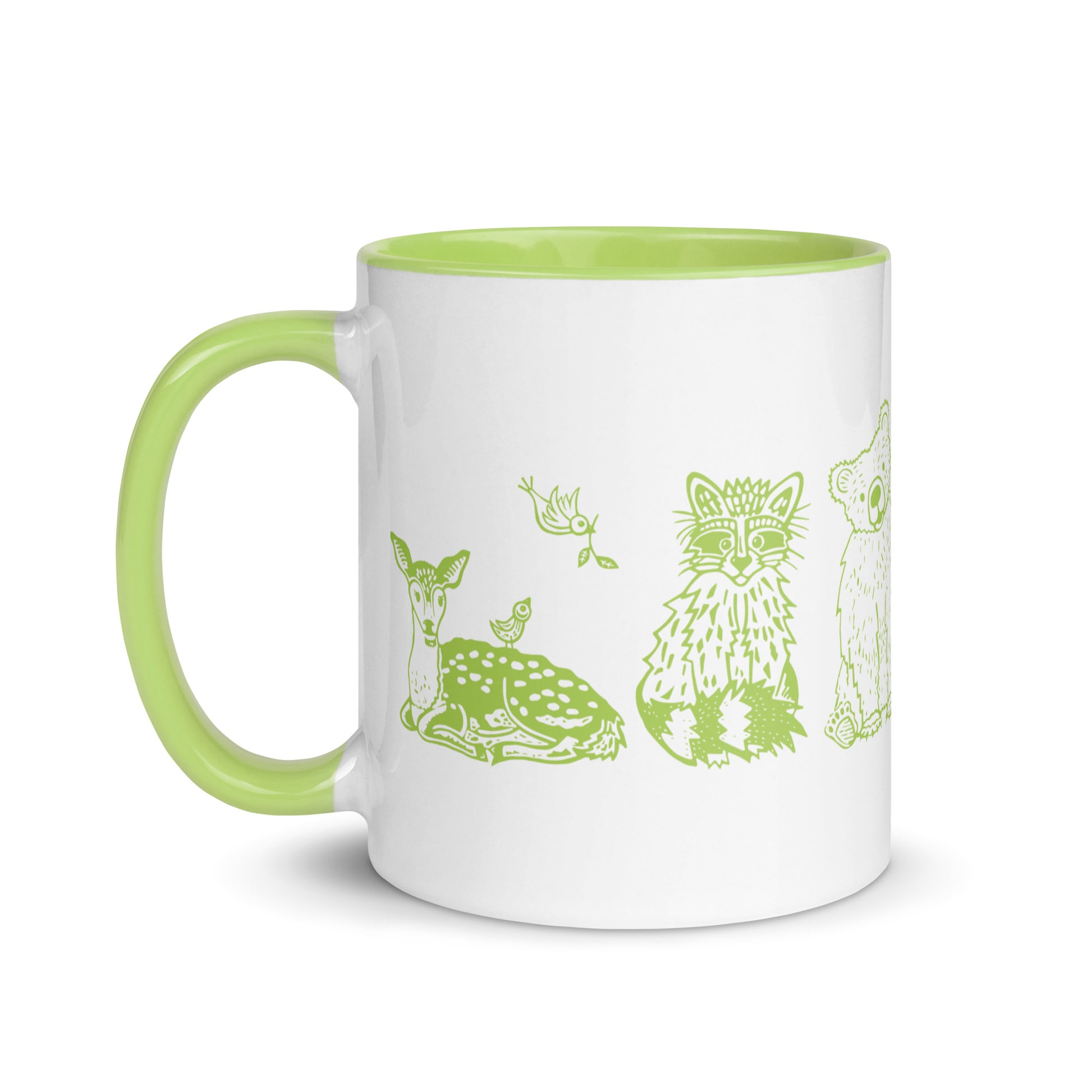 Sauntering along the forest floor, these sweet woodland animals are happy to share your morning coffee or tea ritual! These ceramic mugs not only have a beautiful design on them, but also a colorful rim, handle, and inside, so the mug is bound to spice up your mug rack.